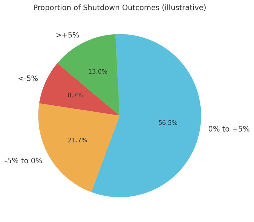 ただし歴史から見ると、短期間の閉鎖は大きなトレンドを変えるほどには作用しにくい傾向があります。