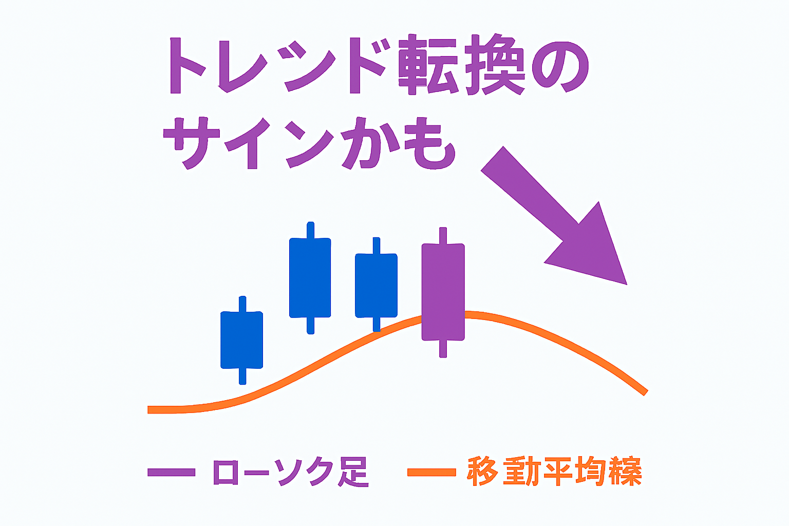 - ローソク足が移動平均線を下抜け → トレンド転換のサインかも